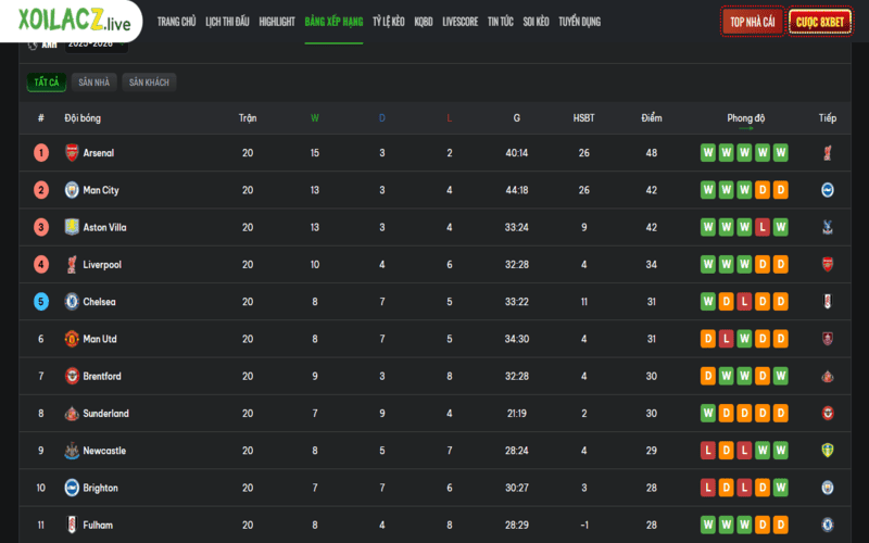Một trong những lý do khiến nền tảng được đánh giá cao là tốc độ cập nhật nhanh. Ngay khi trận đấu khép lại, bảng xếp hạng sẽ được điều chỉnh theo kết quả mới nhất, hạn chế tối đa độ trễ thông tin.